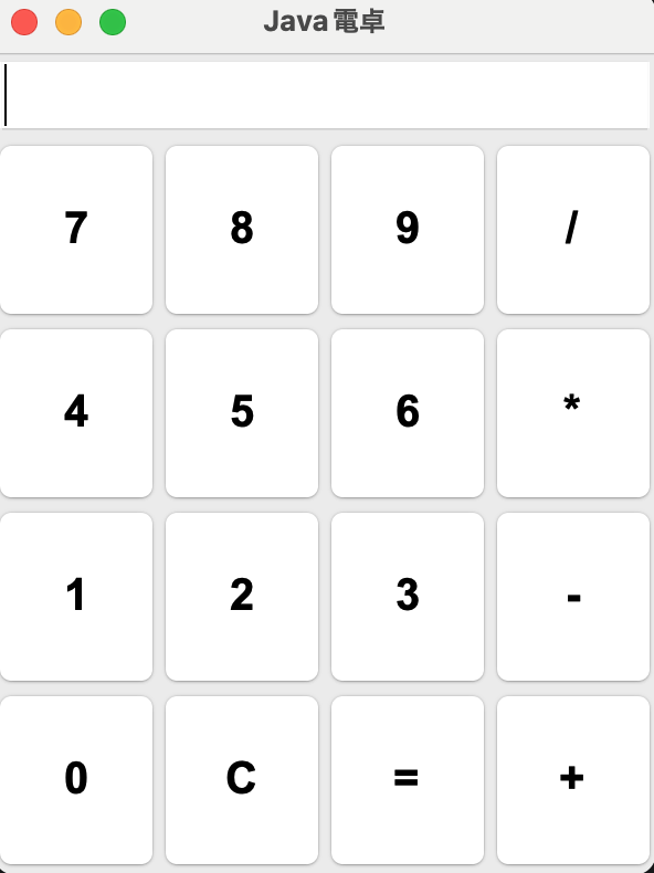 | 7 | 8 | 9 | ÷ | ← 数字 & 演算子(JButton)