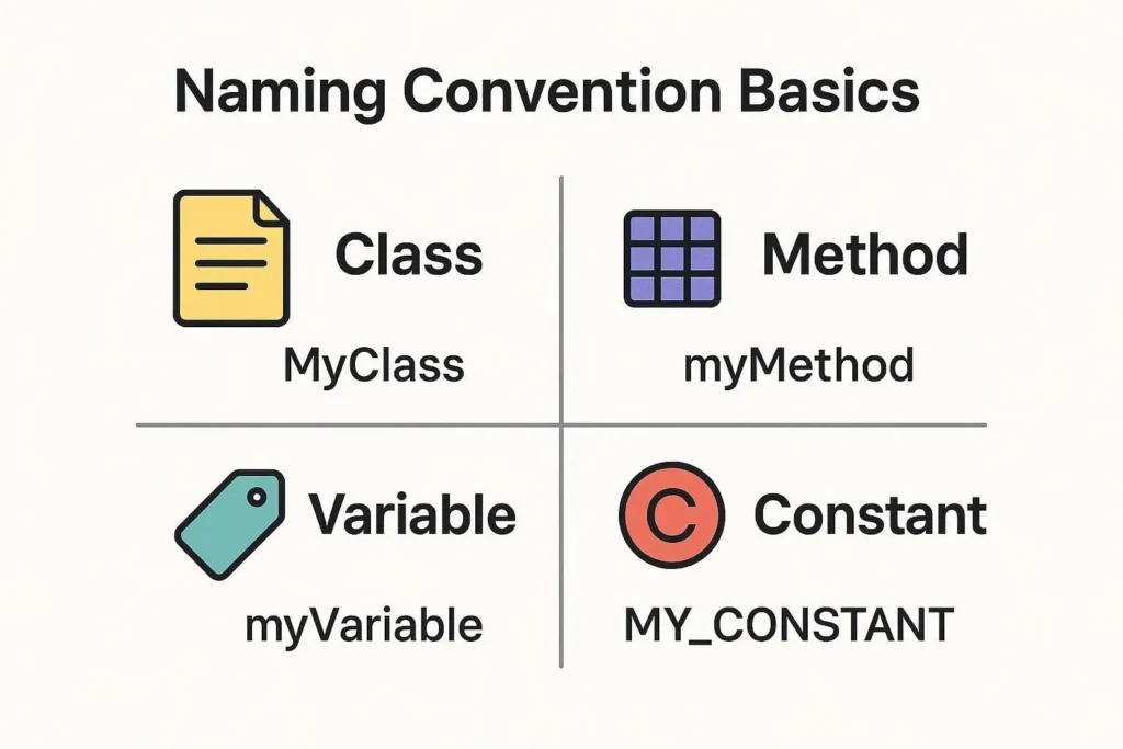 コーディング規約の中でも、最も基本的で重要なのが命名規則です。名前を見ただけで、そのクラスや変数が何であるか、どんな役割を持つのかが瞬時に分かるのが理想です。